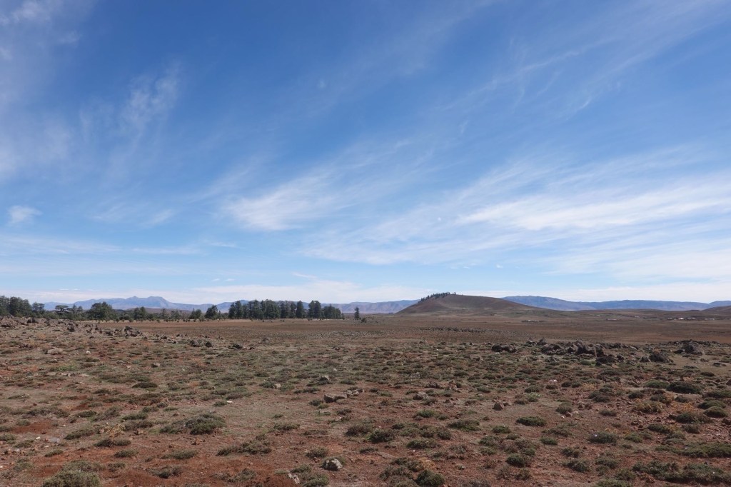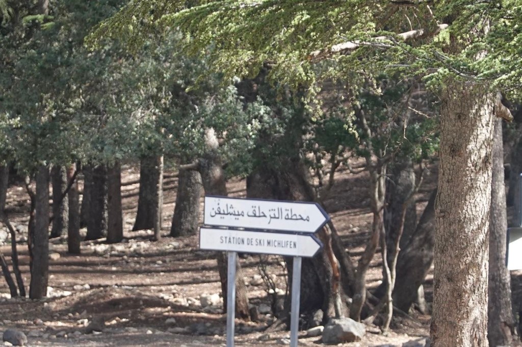 Bis Azrou, unserem nächsten Etappenziel, sind es nur 20 Kilometer. Es gibt aber auch einen längeren Umweg mit vielen vielen Höhenmetern. Bis zu einer Höhe von 1974 m über dem Meeresspiegel. Unser höchster Punkt bisher. Wir wollen uns das Skigebiet von Ifrane nicht entgehen lassen. Von einem Pass aus können wir bis zu den höchsten Gipfeln im Mittleren Atlas schauen. Wir fahren abwechselnd durch Zedernwald und über steinige Hochebenen. Hier gibt es nur riesige Schaf- und Ziegenherden. Und Landschaft so weit das Auge reicht. Das Skigebiet ist am höchsten Punkt mitten im Zedernwald. Durch die Bäume sehen wir zwei einfache Tellerlifte. In den Alpen kaum noch zu finden. Das Skiresort ist auch in der schneefreien Zeit abgeriegelt und bewacht. Nur die vielen Berberaffen können dort rein und raus.