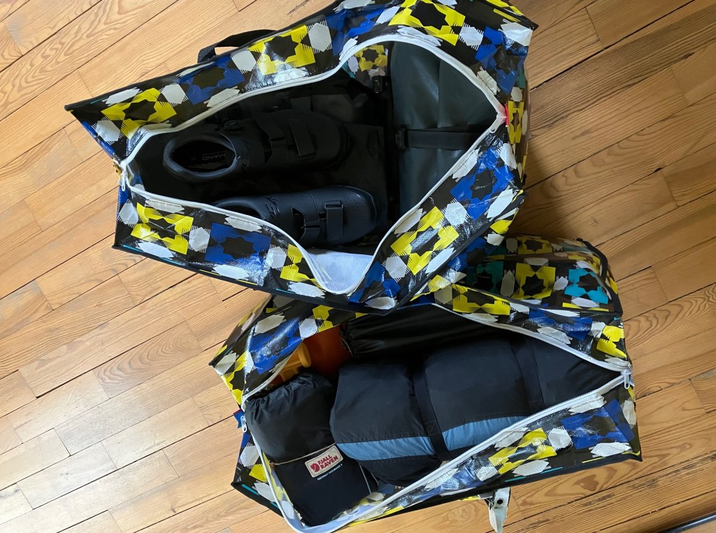 … im Zusatzgepäckstück reingestopft. Jetzt passt alles!