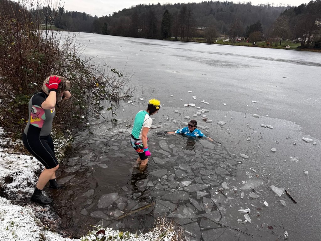 Mutprobe: Eisschwimmen im Niederwürzbacher Weiher