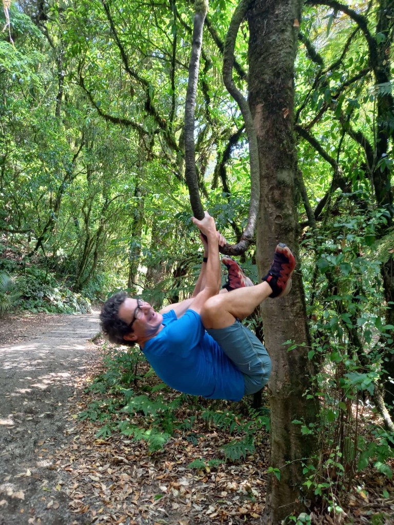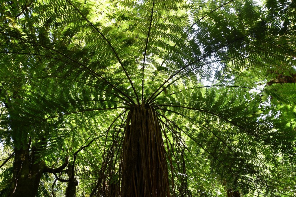 Nach Süden ans Meer. Unterwegs halten wir an den Bridal Veil Falls an. Ein kurzer Weg führt durch einen Urwald, einen subtropischen Regenwald, zu einem ca. 70 m hohen Wasserfall. Beides ist beeindruckend. Der Wald aus uralten moosbedeckten Bäumen mit bis zu 20 m hohen Baumfarnen, Palmen und einem dichten üppigen Unterholz aus Sträuchern, Moosen und Flechten. Ohne einen Weg wären wir nicht zu dem Wasserfall gekommen. Und hätten dieses Naturwunder verpasst.