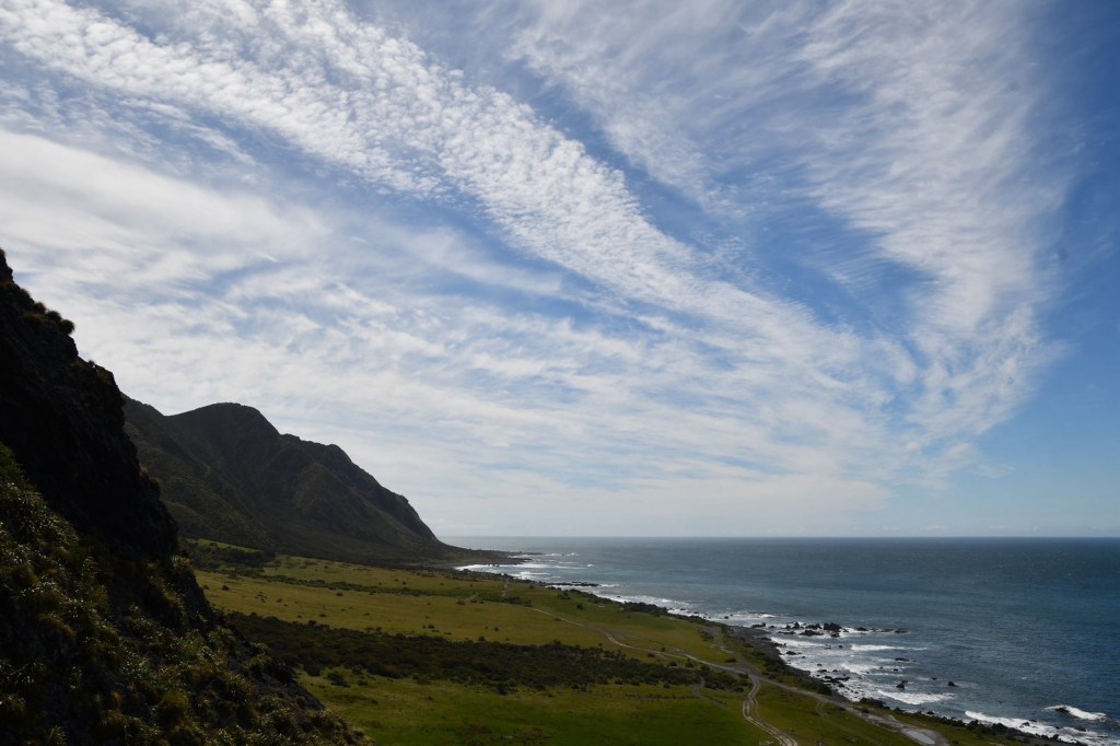Wir verabschieden uns vom Taranaki. Und fahren 400 km in den Süden. Die südöstliche Spitze der Nordinsel ist unser Ziel. Die lange Autofahrt haben wir zuhause schon eingeplant. An einem Wildlife Centre machen wir kurz Pause. Klaus packt die Brote aus. Er wird von einem Kaka, einem Papagei, überfallen. Der Vogel hat es auf die Brote abgesehen. Er springt Klaus bis auf den Schoß. Schilder warnen vor den schmerzhaften Bissen der Kakas. Am Nachmittag kommen wir am Lake Ferry an. An einem Süßwassersee mit Verbindung zur Palliser Bay. Wir sind an der Cook Strait, der Meerenge zwischen den beiden Inseln Neuseelands. Die Südinsel können wir in der Ferne schon sehen. Die Meeresstraße ist an ihrer engsten Stelle 22 km breit. Sie zählt zu den stürmischsten Meerengen der Welt.