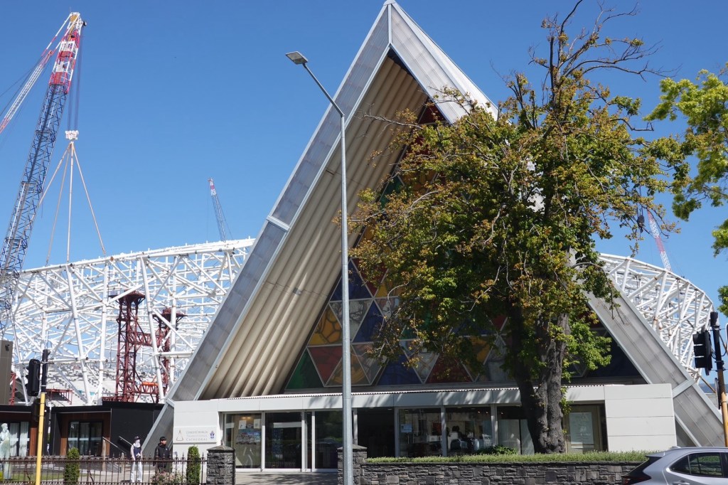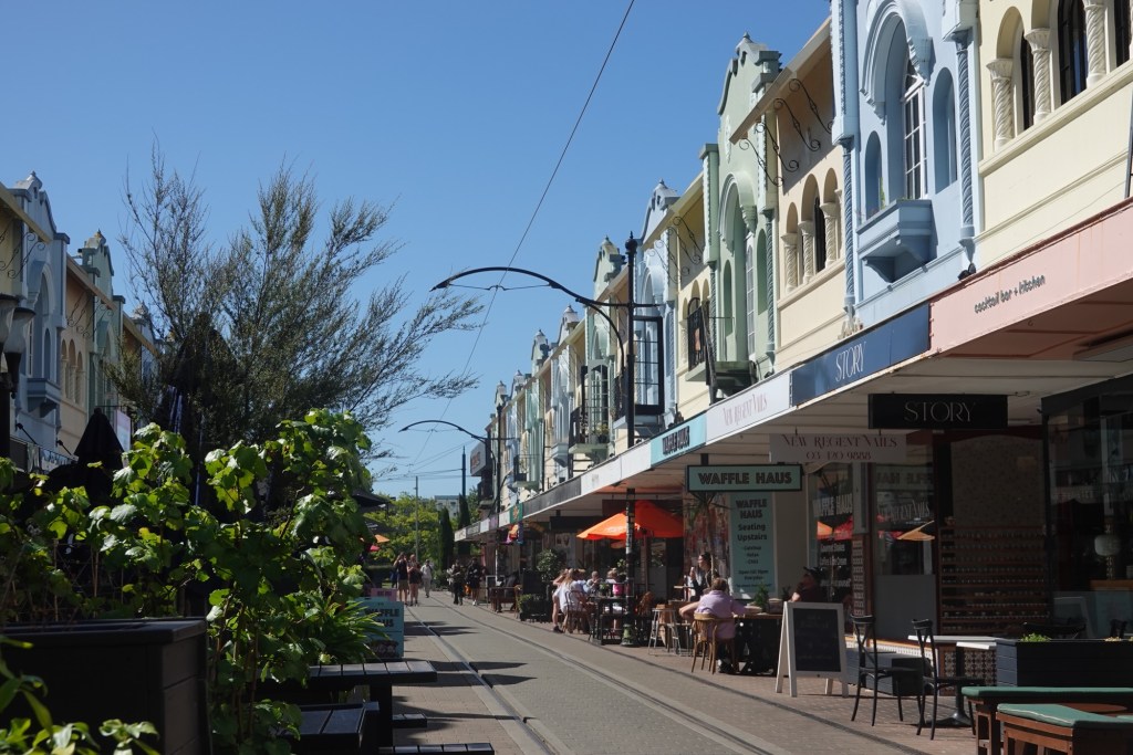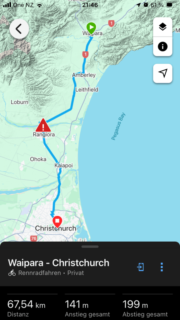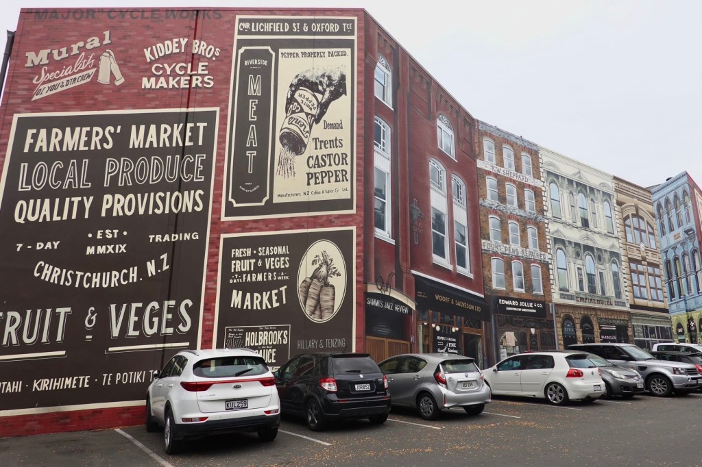 Und dort fahren wir heute hin. Die Straßen sind wiederhergestellt. Sogar perfekte Radwege wurden gebaut. Fast 30 km fahren wir über tolle Radwege in die Stadt. Bis zu unserem Apartment. Die Räder dürfen wir in dem Garten sicher abstellen. Christchurch wurde als moderne Stadt wieder aufgebaut. Doch bis heute gibt es noch viele Brachflächen. Sie werden mit Streetart verschönert. Es gibt einen Kunstrundweg durch die Stadt. Die historische Kathedrale wurde vollkommen zerstört. Eine provisorische Pappkirche, die Cardboard Cathedral, soll sie bis zum Wiederaufbau ersetzen. Ein riesiges Stadion ist im Bau. Historisch sind noch die Tram und die Regent Street. Es gibt hohe neue Gebäude in der City. Anders als in den Vororten. Dort entstehen viele Neubauten aus Holzkonstruktionen und extra leichten Dächern. Da funktioniert vielleicht das unter den Tisch kriechen. Wir waschen unsere Wäsche und kochen in der Gästeküche. Und tauschen uns mit Frank und Svenja aus Hamburg und Oldenburg aus. Sie sind schon einige Zeit mit einem gekauften Wagen in Neuseeland unterwegs. Ein netter Abend.
