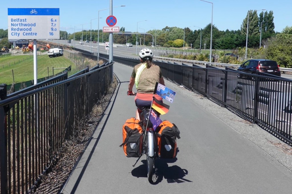 Mit den Rädern wollen wir noch zum Meer. Doch Klaus hat einen Platten. Es wird zu spät. In einem Radladen kaufen wir noch Schläuche und fahren dann eine große Runde durch den Park. Er nimmt ein Drittel der gesamten City ein. Es gibt unzählige Flächen für die verschiedensten Sportarten: Rugby, Cricket, Netball, Hockey, Tennis, Golf… alles umsonst. Auf den Wegen wird Rad gefahren, gejoggt, gewalkt und spaziert. Es scheint, dass halb Christchurch hier am Nachmittag Sport treibt. Beim Kochen im Aparthotel treffen wir noch zwei extreme Sportler. Micaela und Jörg aus Berlin und Dresden sind seit Oktober auf dem Te Araroa Trail unterwegs. Sie durchwandern beide Inseln von Neuseeland längs. 3.000 km durch Urwälder ohne richtige Wege, Flussquerungen ohne Brücken, Tage ohne Einkaufsmöglichkeiten, Regen, Sturm und Sandflies… Noch 400 km fehlen ihnen. „Chapeau“. Da sind unsere geplanten 4.000 km mit dem Rad nichts dagegen. Auf widrige Bedingungen sind auch wir eingestellt.