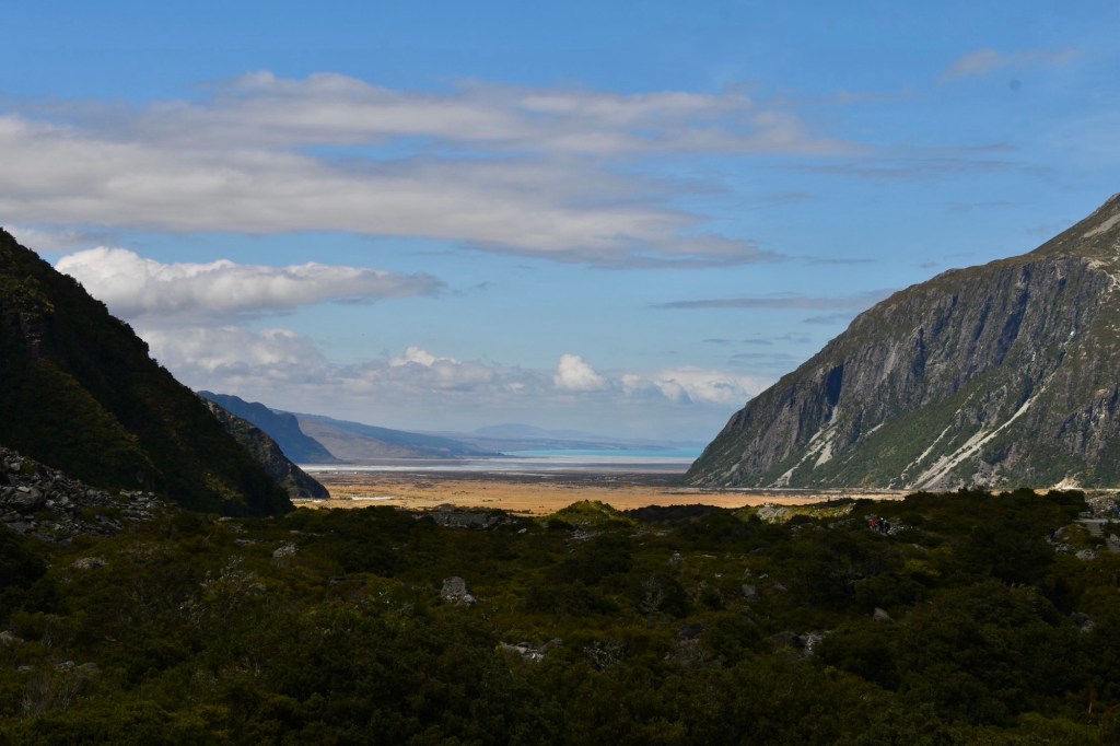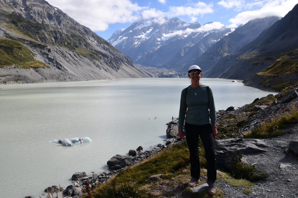 Auf dem Rückweg kommen uns hunderte Menschen entgegen. Die meisten sind Asiaten. Sie sind wenig ausgestattet für die Berge. Und haben scheinbar panische Angst vor der Sonne. Die meisten sind viel zu warm angezogen, tragen Gesichtsmasken und sogar Regenschirme. An jedem Lookout posieren sie für ihre Social Media Präsentationen. Auf dem Parkplatz angekommen, sehen wir dass sie in großen Bussen hier hergefahren werden. Doch wir sind noch nicht genug gewandert. Der nächste Weg führt uns zum Mueller Glacier. Hier ist weniger los. Es wird immer heißer. Wieder Top Aussicht. Im Edmund Hilary Museum finden wir etwas Abkühlung. Der neuseeländische Bergsteiger hat am Mount Cook für seine Besteigung des Mount Everest und seine Pol-Expeditionen trainiert. Das Museum ist etwas enttäuschend, doch wir sind wieder fit für die dritte Wanderung heute.