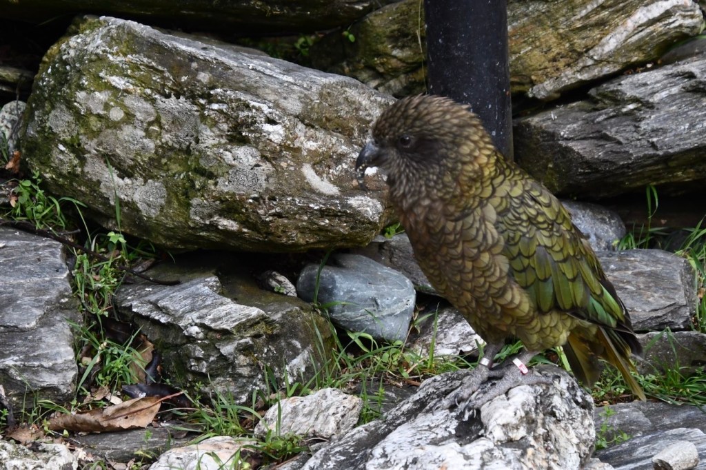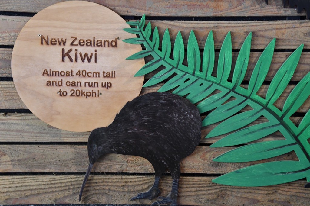 Wir wollen einen Kiwi sehen. In der freien Natur ist das nicht möglich. Kiwis sind nachtaktiv. Im Kiwi Park Queenstown sind die Uhren für Kiwis umgestellt. Sie bekommen tagsüber künstliche Dunkelheit in ihrem Vogelhaus und nachts Tageslicht. Wir fahren acht Kilometer mit dem Rad zum Kiwihaus. Wir haben Glück. Die nächste Führung beginnt gleich. Im Kiwihaus dauert es lange, bis sich unsere Augen an die Dunkelheit gewöhnt haben. Doch dann sehen wir alle drei Kiwis. Sie stochern mit ihren langen Schnäbel in der Erde und in totem Holz. Sie gehören zu den flugunfähigen Vögeln. Warum könnt ihr unten in der Māori-Sage nachlesen. Im Bird Park gibt es noch andere endemische Vögel. Einige davon haben wir schon in freier Natur gesehen. Ein Highlight des Parcs dürfen wir noch erleben, die Brückenechse Tuatura. Sie ist ein lebendes Fossil, weil sie Überlebende einer genetischen Spezies ist, die es vor 150 Millionen Jahre zur Zeit der Dinosaurier gab.