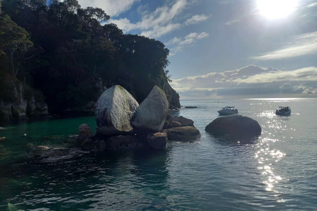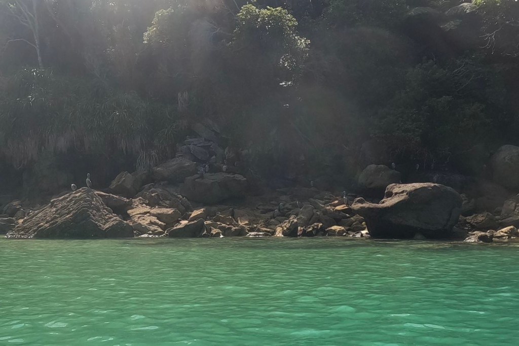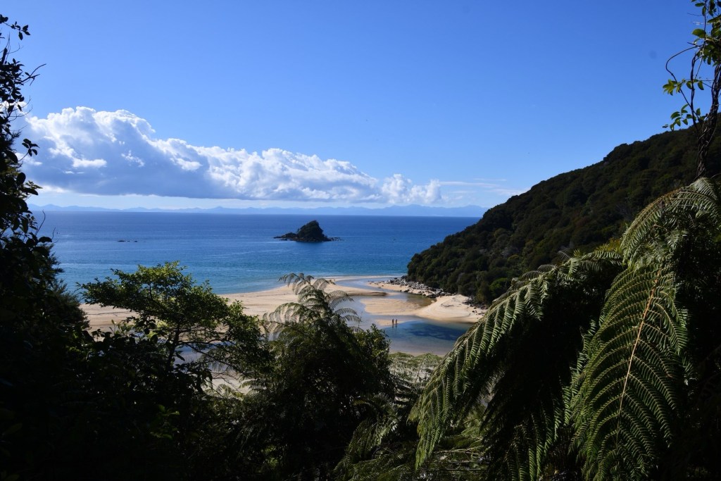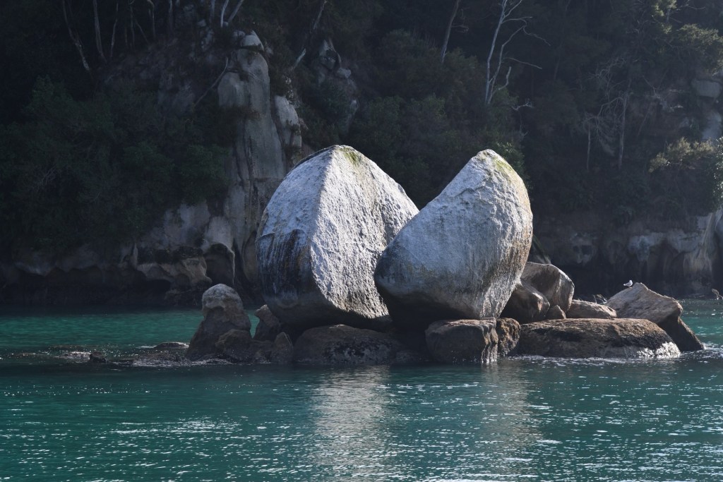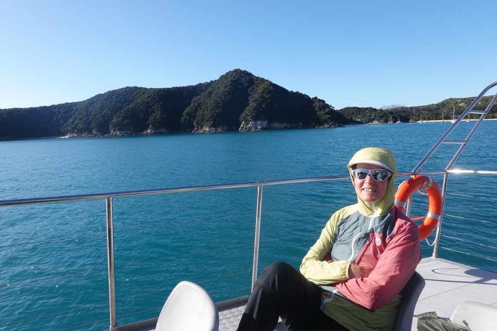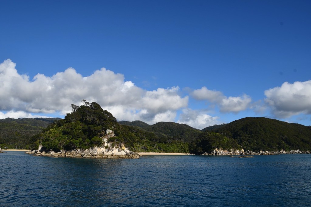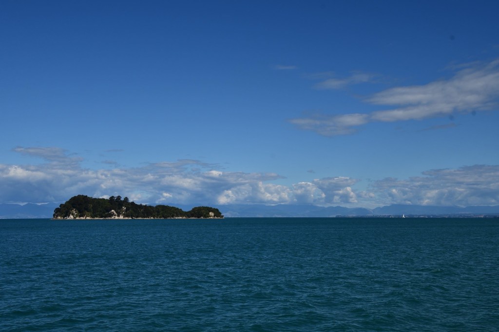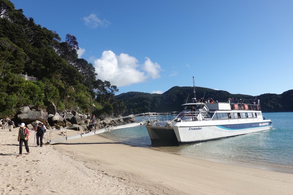 Ein Shuttle-Bus holt uns kurz nach 8 Uhr am Campingplatz ab. Wir fahren nach Kaiteriteri, dem Eingangsort zum Abel Tasman Nationalpark. Es ist der kleinste Nationalpark Neuseelands. Das Gebiet, das vom Meer aus bis in Höhen von 1150 m reicht, wurde 1942 zum Nationalpark. 300 Jahre nach der Landung seines Entdeckers, dem niederländischen Seefahrer Abel Tasman. Er ging hier 1642 vor Anker, um Wasser und Vorräte aufzufrischen. Māori lebten hier schon viel früher. Von den Eingriffen der Siedler ist heute nichts mehr zu sehen.