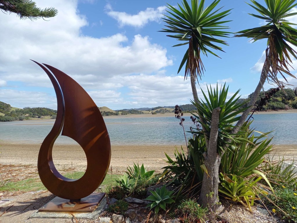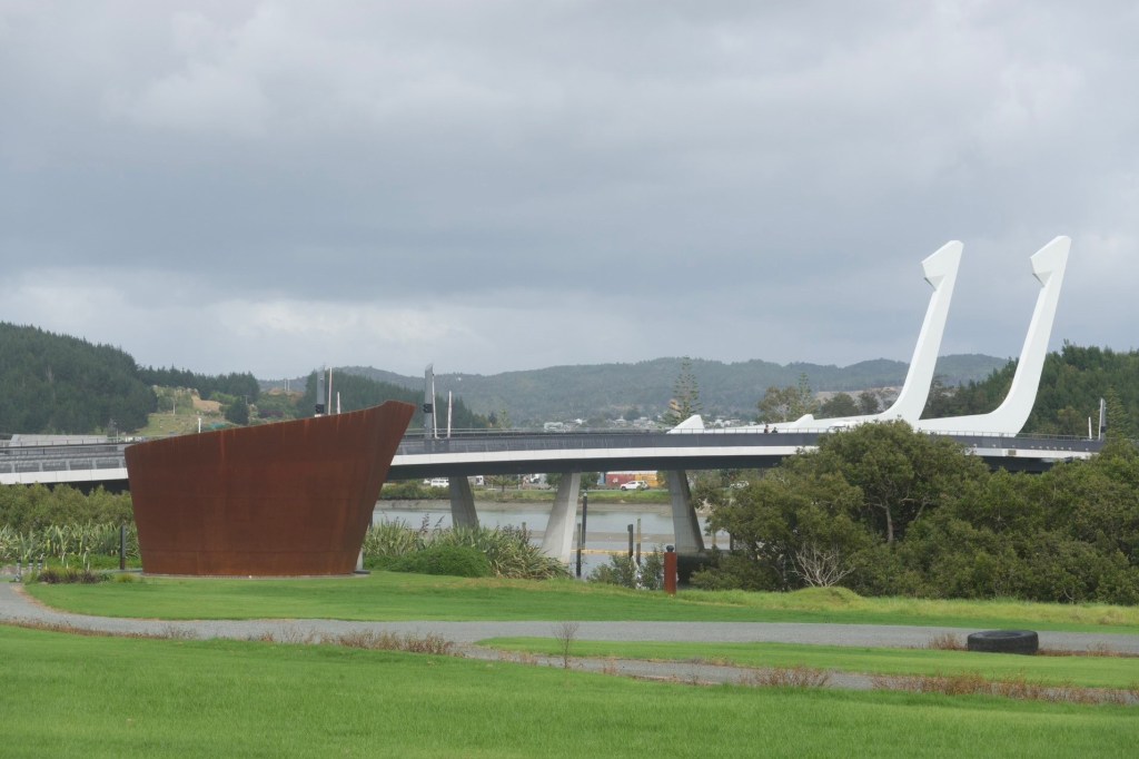 In Whangārei schaffen wir es gerade noch, uns die Wasserfälle im Trockenen anzusehen. Das heißt, die Wasserfälle hatten schon Wasser, doch wir schafften es kurz vor dem Regen zum Auto zurück. Gut, dass wir wieder ein Häuschen auf dem Campingplatz gebucht haben. Wir laden aus und ziehen unsere Regensachen an. Ein Fußweg durch den Bush mit Kauribäumen führt ins Zentrum. Es schüttet und wir hätten gerne noch das Hundertwasser Art Centre mit der Māori Art Gallery besucht. Doch wir sind zu spät. Es schließt in 15 Minuten. Wir laufen im Regen weiter und schauen uns die Hafenpromenade und die Skulpturen entlang des Town Basins an. Whangārei ist eine von Kunst geprägte Stadt. Die Einkaufsmeile ist unspektakulär wie überall in Neuseeland. Und die Läden schließen zwischen 16 und 18 Uhr.