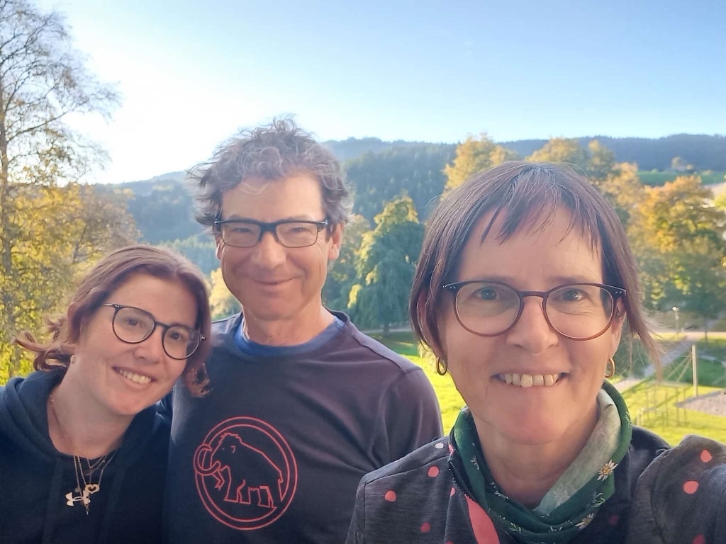Die letzten Kilometer fliegen wir bergab nach Hinterzarten. Und dann ist auch gleich das kleine Familientreffen perfekt. Sabine kommt fast gleichzeitig mit uns bei Sarah an. Sie musste mit dem Auto fahren, weil die geplante Flixbus-Anreise einen Tag vorher ersatzlos storniert wurde. Aber letztlich war das gut so. Nach unseren schönen gemeinsamen Tagen kann ich mit ihr direkt nach Hause fahren. Mit zwei Vorteilen. Erstens bleibt mir der prognostizierte kalte Dauerregen als Radfahrer erspart. Zweitens haben wir noch etwas mehr Zeit für die Planung unserer in fünf Tagen startenden Korsikatour in den Herbstferien. Ich freue mich, die Erlebnisse wieder unmittelbar mit Sabine teilen zu dürfen. Ich habe in den drei Wochen meine eingespielte Radpartnerin schon vermisst. Mal einfach drauf los zu fahren, Kilometer zu schrubben, war ja mal ganz schön. Aber sich später gemeinsam an Eindrücke von unterwegs zu erinnern, ist nicht zu überbieten. Korsika, wir kommen. Bald.