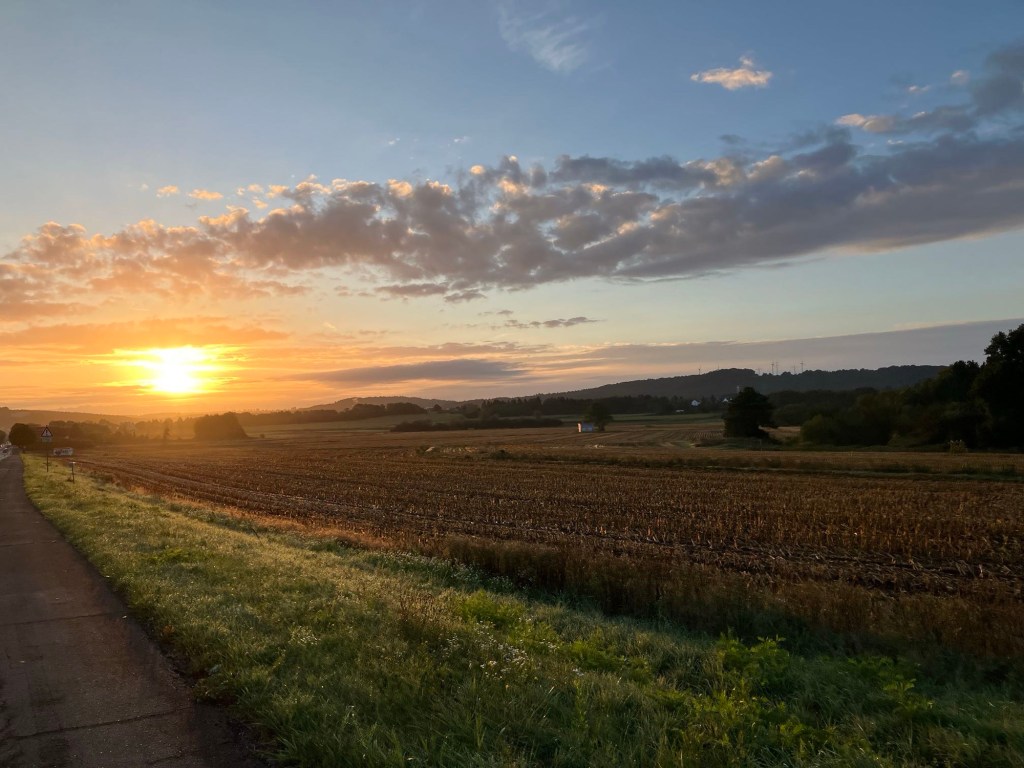 Auch der nächste Radtag startet sehr früh. Das Kinzigtal ist noch im Nebel. In und nach Fulda begleiten mich einige Höhenmeter bis zur ehemaligen Zonengrenze in der Nähe der Werra. Ich wähle grundsätzlich den fast direkten Weg, was mir kurz nach Eisenach zum Verhängnis werden soll. Ich lande im Feierabendverkehr auf einer extrem stark befahrenen Bundesstraße, von der es kein Entkommen mehr gibt. Und zu allem Überfluss geht es dabei noch ca. 200 Höhenmeter hoch. Ich möchte nur noch runter von der B84. Ich würde auch Gravelpassagen akzeptieren. Aber keine Chance. Dort, wo ein Feldweg die Bundesstraße erreicht, sind durchgehende Leitplanken. Wahrscheinlich, damit sich kein Radfahrer auf die Hauptstraße verirrt. Dass eine bekloppter Radfahrer abfahren will, damit rechnet niemand. Aber ein großes Lob an alle Auto- und Brummifahrer. Jeder ist bei Gegenverkehr hinter mir geblieben, kein Hupen, kein Gemeckere, kein gefährliches Überholen. Danke. Auf den letzten Kilometern werde ich für die Strapazen belohnt. Mit perfektem Rückenwind fliege ich bis zum Campingplatz in Weißensee. So knacke ich auch heute die 200er Schallmauer.