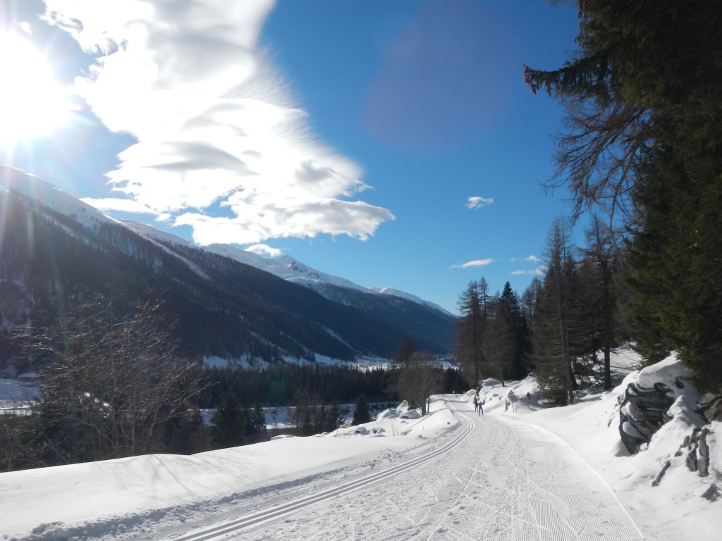 In fließenden Bewegungen gleiten wir auf Skating-Ski über frischen Neuschnee , der Schnee knirscht und wir fühlen uns wie auf Wolken. Dies ist für uns jedes Mal ein tolles Erlebnis. Und der Grund dafür, weshalb wir versuchen, in jedem Winter ein paar Langlauftage einzuplanen. Alpin-Ski fahren wir schon lange nicht mehr, mit dem Lift auf den Berg und dann runter zu brettern ist uns als Ausdauersportler nicht genug. Wir suchen stattdessen die Anstrengung auf der Loipe und weniger Trubel als auf der Piste.