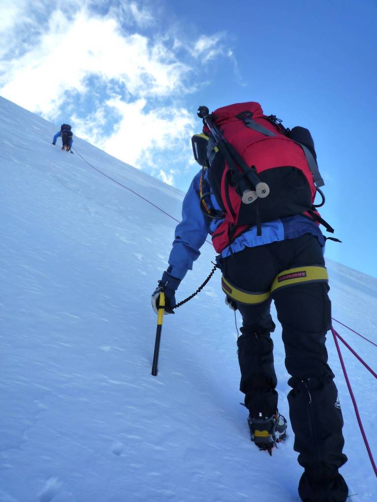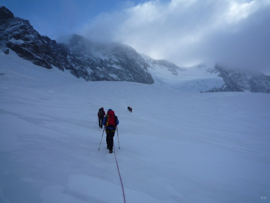 Eine unserer Touren war für uns eine besondere Herausforderung. Wir sind in fünf Tagen mit einem Schweizer Bergführer auf 9 Viertausender des Monte Rosa Massivs gestiegen. Mit Steigeisen in einer Seilschaft in großer Höhe zu gehen war eine neue Erfahrung für uns.